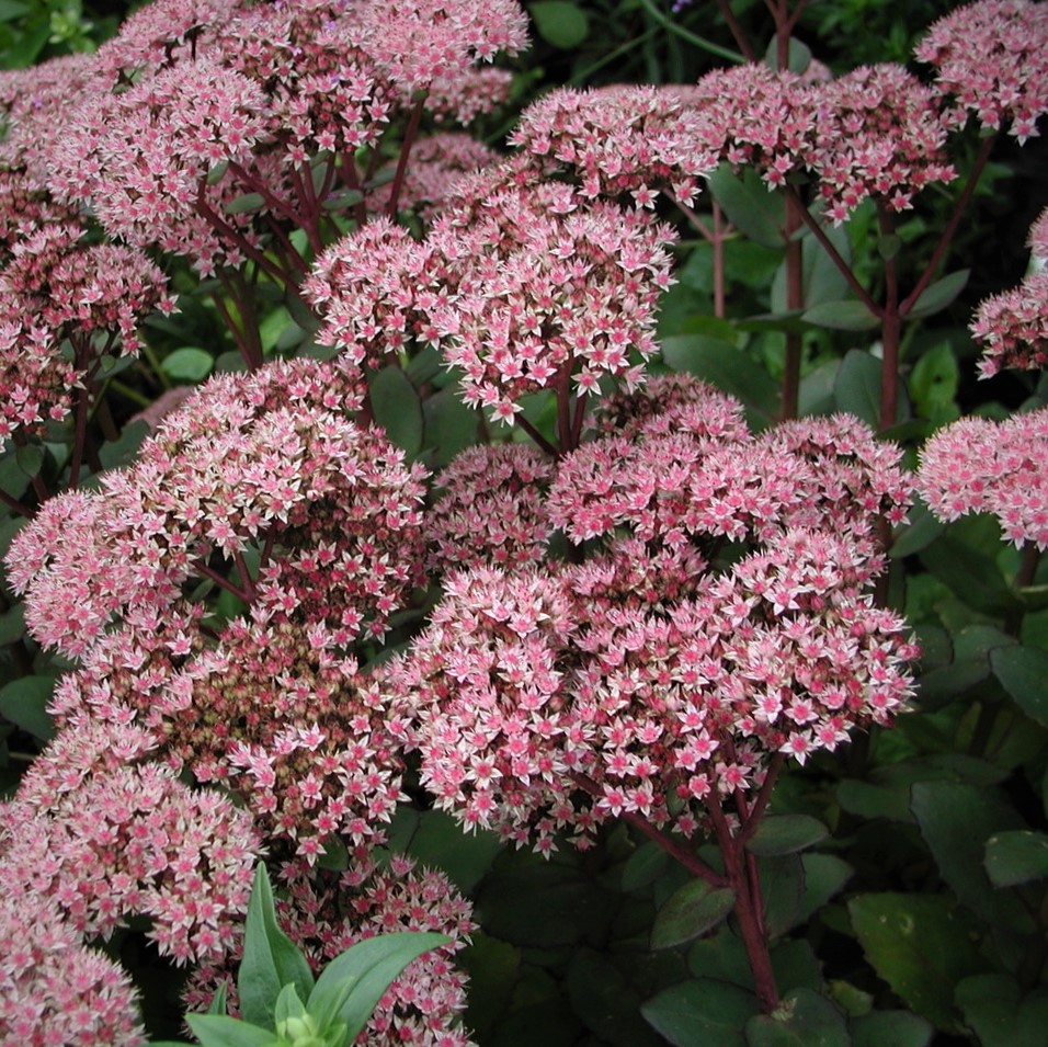 Juli – september, 50 cm, rosa blomster, stængler og blade er let rødlige, snitblomst, sol, bunddække, evt i stenbed.