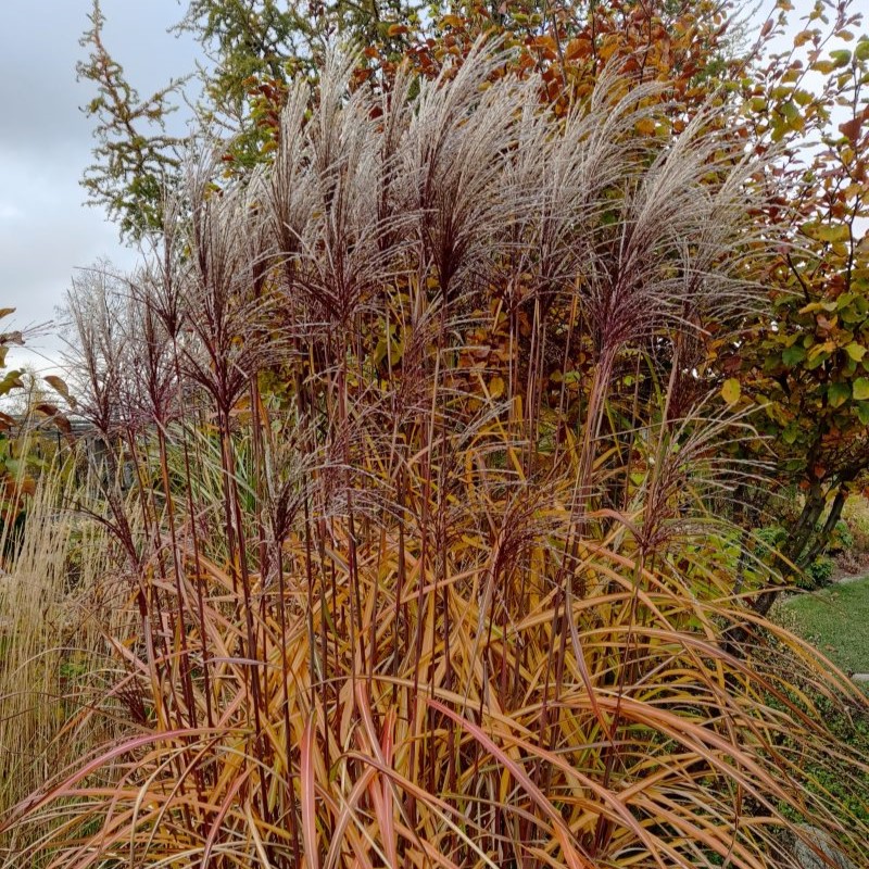 Juli-oktober, 200 cm, kobberfarvet aks der senere bliver hvid og rødlig, flotte høstfarver, kompakt vækst, sol-let skygge, klippes ned senest 1. marts.