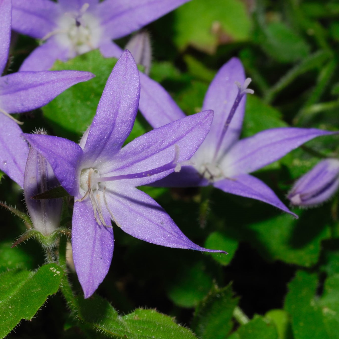 Juni-august, 5-10 cm, stjerneformet lilla blomster, bunddække, evt stenbed, sol-halvskygge, veldrænet jord.