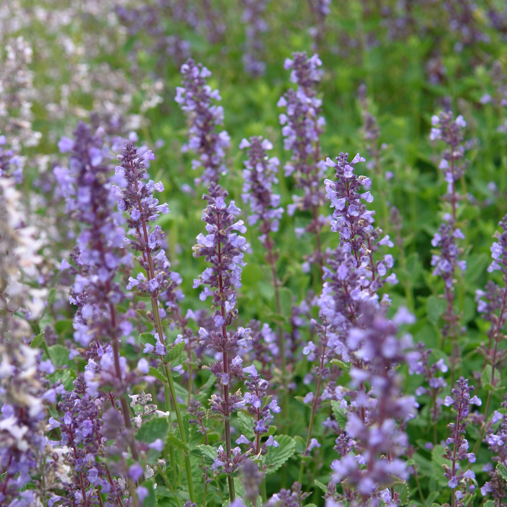 Juni-august, 60-70 cm, blåviolette blomster, bunddække, dufter, sol-halvskygge, trives også i krukker, tiltrækker bier og sommerfugle.