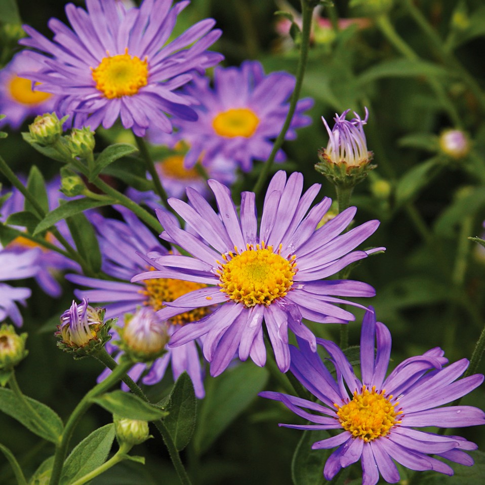 Juli-oktober, 60 cm, lillarosa blomster med gul midte, sol, fugtig men veldrænet jord, tiltrækker sommerfugle,