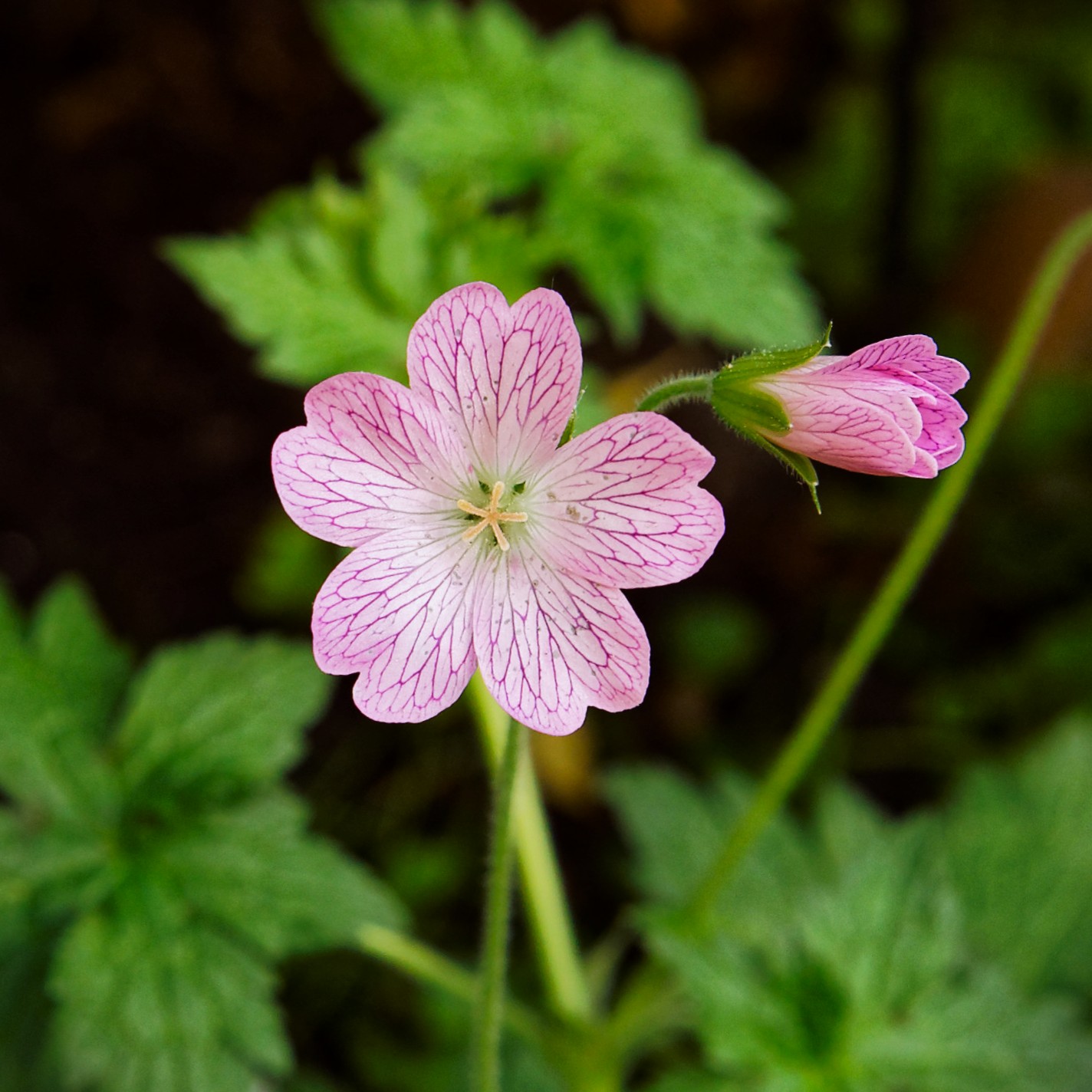 Juni-juli, 40-50 cm, blege pink blomster med mørkere åre, sol-halvskygge, fyldig bunddække, trives også i krukker, klippes ned for genblomstring, tiltrækker bier og sommerfugle.