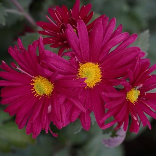 Oktober-november, 80 cm, rødlilla, blomster med gul midte, rigtblomstrende på lange stængler, stivstilket, sol, snitblomst, tiltrækker insekter.